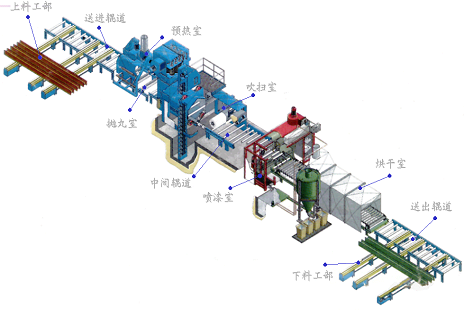 型鋼車輪涂裝生產線車間設備包括前處理設備、電泳及后沖洗系統、電泳烘干室、強冷室、噴漆室、流平室、面漆烘干室。