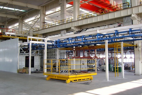 型鋼車輪涂裝線?車間任務(wù):依據(jù)廠方提供的《型鋼車輪油漆線技術(shù)條件》新設(shè)計(jì)的型鋼車輪涂裝線車間,年產(chǎn)承擔(dān)130萬(wàn)套車車輪、擋圈的前處理磷化、陰極電泳和其中60%件涂面漆的涂裝任務(wù)。