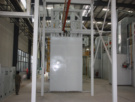 工件由懸鏈輸送至封閉的拋丸清理室,利用拋丸器高速旋轉的葉輪將鋼絲切丸(彈丸)加速拋打至工件表面,對工件表面進行沖擊,刮削,以清除工件表面的鐵銹、氧化皮和污物等,然后利用高強度滾刷、收丸螺旋和高壓吹管將工件表面的積丸和浮塵吹掃干凈,從而使鋼材達到除銹、防銹的目的。