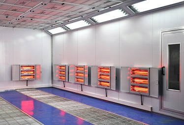 電加熱烤漆烘干房通過加熱管對漆膜和密封膠進行固化, 可分為普通電熱管和紅外線加熱管,烘干后漆膜質量可靠,表面光澤度高,光亮柔和;可對任何氣體產生的熱氣直接干燥,不導電、不燃燒、無爆炸、無污染。其最大優勢是前期投入成本低、升溫速度快,且干凈無污染,但缺點是運行成本高,耗電量大。