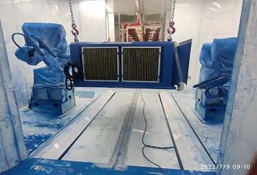 | 靜電噴粉房室體兩側設置人工補噴工位,工位大小及位置設置合理,根據機器人仿真噴涂軌跡,保證機器人噴涂不到的位置人工噴涂均能覆蓋,設計時要充分考慮鏈條速度與人工補噴速度的合理性,保證該工位設計滿足線體速度需求。同時該工位高度設置要合理,要覆蓋所有工件的人工補噴,并便于人工操作。 |