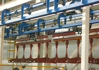 電泳涂裝線前處理大多采用浸漬式與噴射式處理方式(也可采用噴射與浸漬結合方式),其主要目的是通過化學液體(硫酸、硝酸)以浸泡或噴射的方式,與工件表面的氧化物、油脂等產生化學反映來達到除油、脫脂、除銹、水洗、純水洗的目的。電泳采用陰極電泳或陽極電泳,陰極電泳與陽極電泳比較,陰極電泳在技術上更成熟,其泳后漆膜附著力及防腐蝕力比陽極電泳更強。泳后裝飾涂料可采用噴朔或裝飾性油漆。輸送系統前處理一般采用自行葫蘆或積放式輸送設備,前處理后轉線一般采用地鏈滑撬、懸掛輸送鏈、總行葫蘆等輸送方式。具體需要根據工件情況決定。其主要決定因素:工件大小、形狀、重量、材質等。