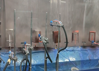 噴漆涂裝線以塑料件工藝為代表,前處理大多采用噴射式處理方式(部分金屬件采用浸漬式或噴射與浸漬結合方式),其主要目的是通過化學液體(硫酸、硝酸)以浸泡或噴射的方式,與工件表面的氧化物、油脂等產生化學反映來達到除油、脫脂、水洗、純水洗的目的。表面涂料為防腐油漆、色漆、清漆等裝飾性油漆材料,并且考慮塑料件高溫變形,一般采用的油漆成膜溫度為50至80℃左右,輸送系統前處理一般采用輕型懸掛鏈和輸送帶、網鏈送設備,前處理后轉線一般采用地鏈滑撬、懸掛輸送鏈等輸送方式。具體需要根據工件情況決定。其主要決定因素:工件大小、形狀、重量、材質等。