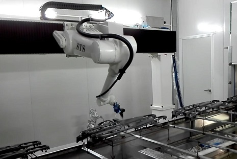 小型工件機器人噴漆現場
